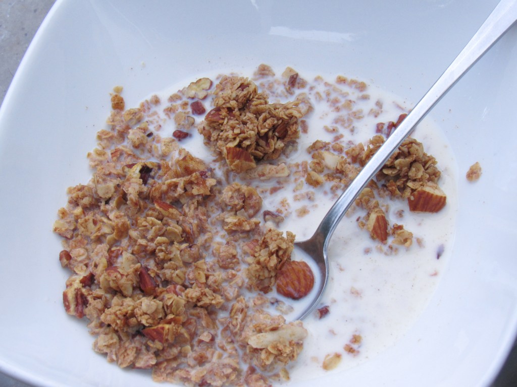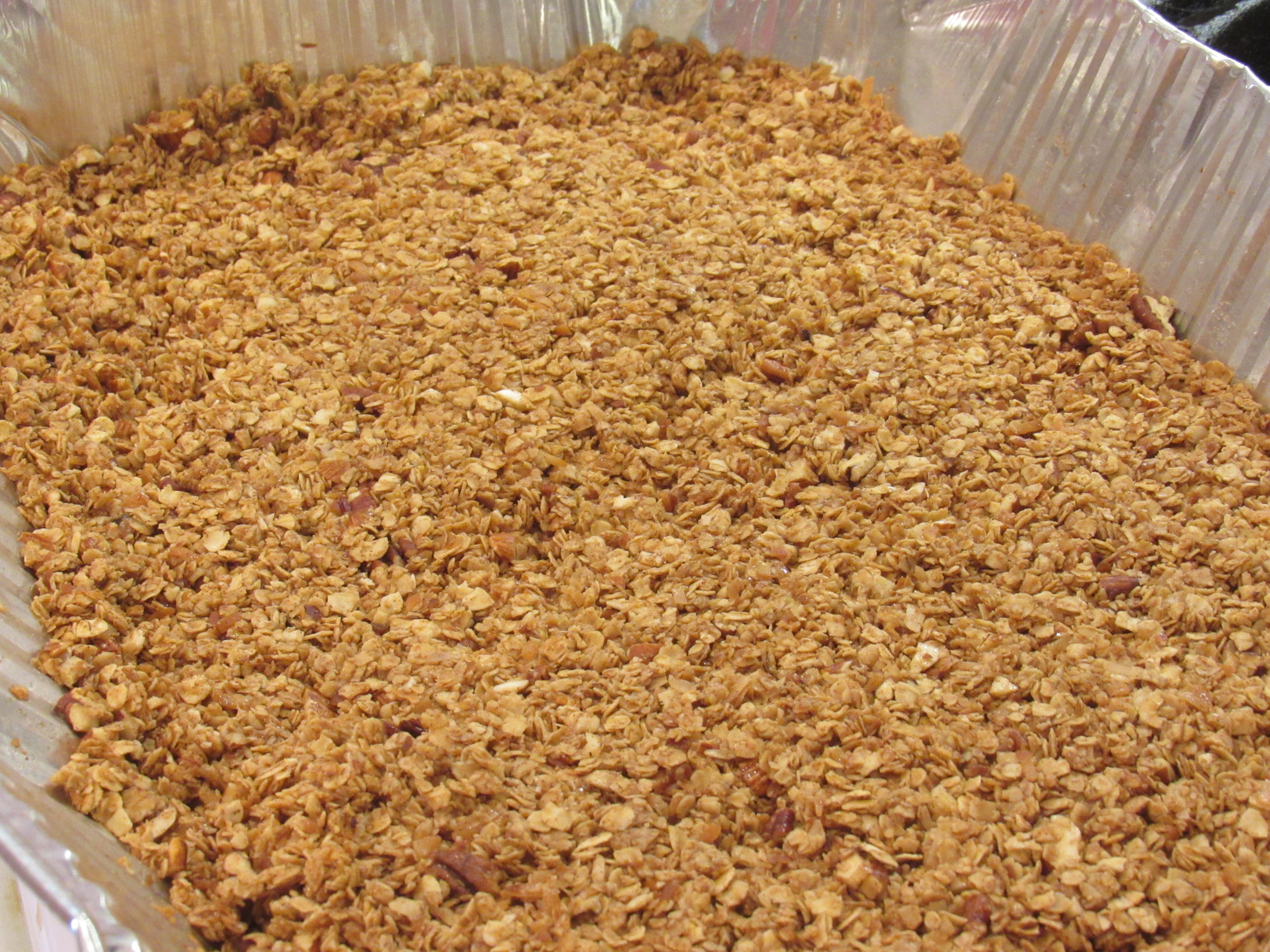 This past week we were gifted SOOOOO many bulk ingredients from our new lifelong friend and baker supreme, Alexis. Among the hundreds of ingredients were quick oats, honey, cinnamon, chopped nuts, flake coconut and a nice 50/50 blend of sunflower and grapeseed oil. So I guess it’s granola time! This recipe is simple and keeps well for a very long time in an airtight container.
