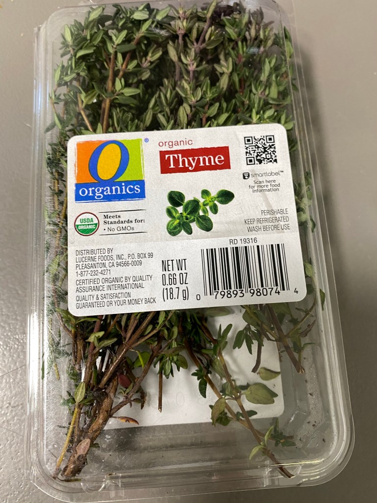 Several sprigs fresh thyme (almost and entire herb box)
