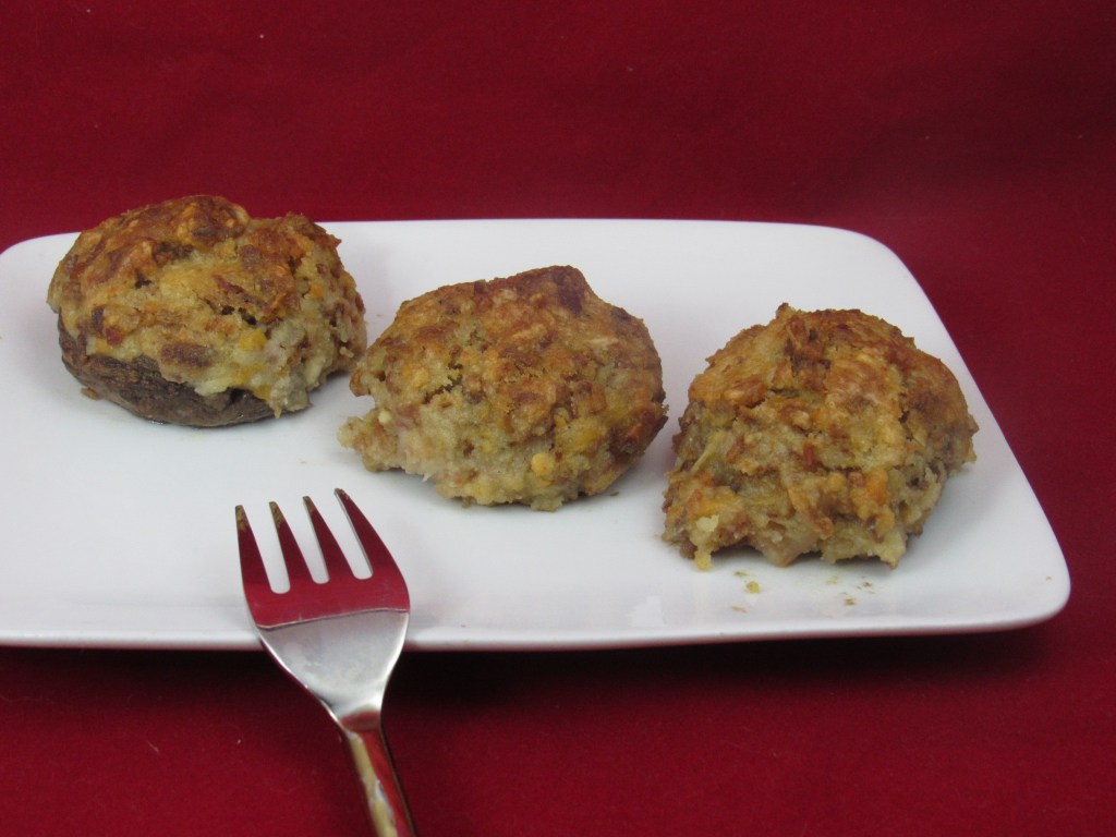 Except for mushroom tops, in a large mixing bowl, combine all other ingredients until well combined.